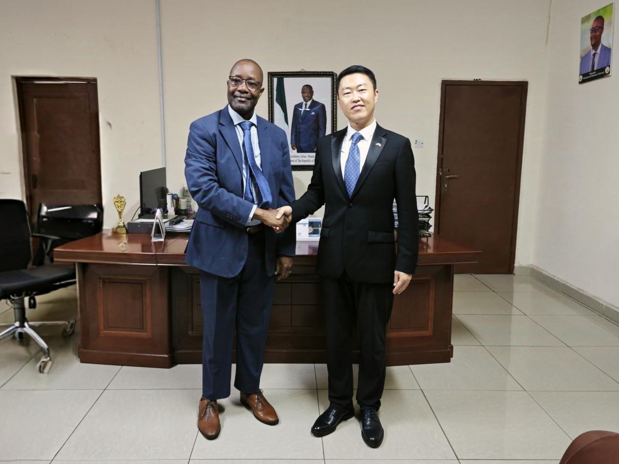 6月24日,驻塞拉利昂使馆王鹏参赞拜会塞劳工和社会保障部长斯瓦莱,双方就保护劳工权益、改善营商环境等议题交换意见。